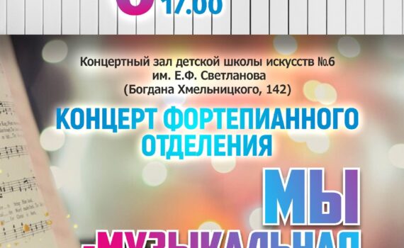 6 февраля в 17.00 часов состоится отчётный концерт фортепианного отделения Детской школы искусств №6 им. Е.Ф. Светланова. Ведущая концерта — Кургуз Александра Борисовна. Будем рады […]