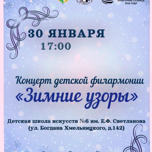 Опубликовано 5 февраля, 2024 Отчетный концерт фортепианного отделения «Мы — музыкальная семья» 6 февраля в 17.00 часов состоится отчётный концерт фортепианного отделения Детской школы искусств №6 им. Е.Ф. Светланова. Ведущая концерта — Кургуз Александра […]