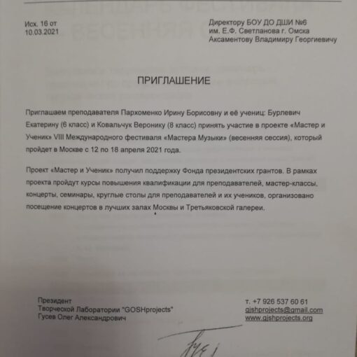 — Щукин Матвей, специализация «труба», преподаватель — Зубков Денис Владимирович → Санкт-Петербургское государственное бюджетное профессиональное образовательное учреждение «Санкт-Петербургское музыкальное училище имени Н.А. […]